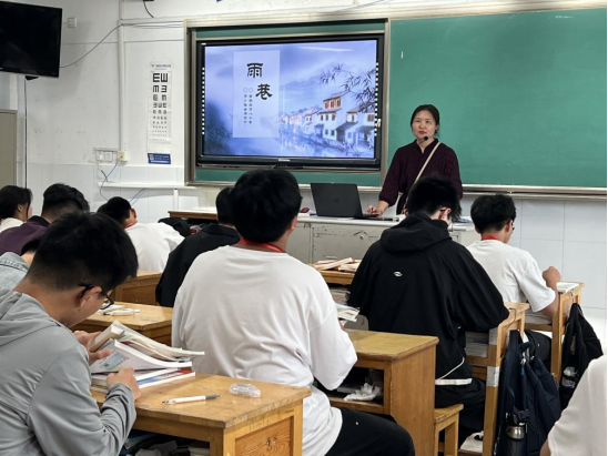 2025年9月24日第5节课,杨学锋老师在2543班开设题为《雨巷》的公开课。语文教研室张琦、刘红梅,以及张露、杨佩倩等人参与听评课活动。