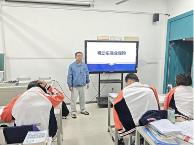 2025年10月21日上午第2节课,曹欢老师在2243班开设题为《机动车商业保险》的公开课。汽修教研组王玉春、沈易晨、吴春华等人参与听评课活动。