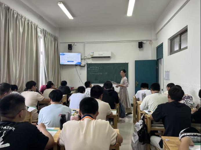 2025年10月13日第三节课,江叶老师在2341班开设题为《Internal Communication》的公开课。英语教研室张露老师、思政教研室杨佩倩老师、语文教研室杨学锋老师等人参与听评课活动。
