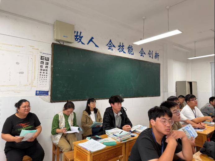 2025年10月15日第五节课,张露老师在2443班开设题为《The Workplace》的公开课。英语教研室王明陶老师、语文教研室杨学峰老师、数学教研室李霞老师等人参与听评课活动。